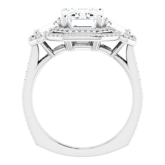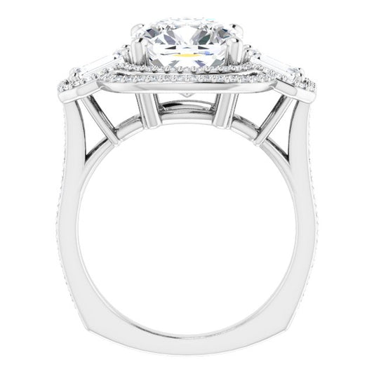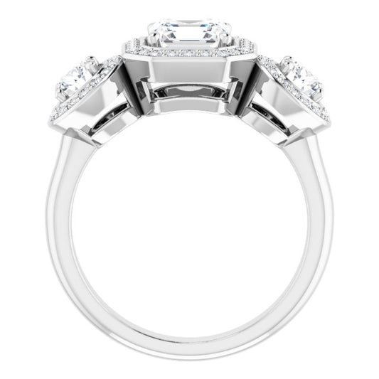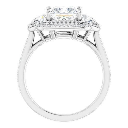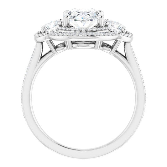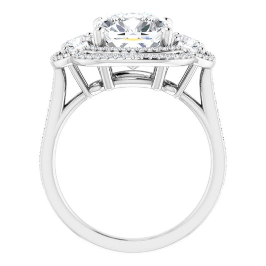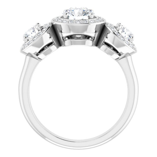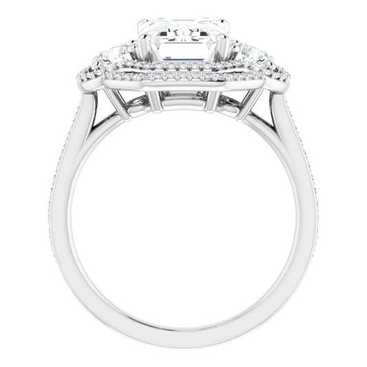 18K White 3-Stone Halo-Style Engagement Ring Mounting