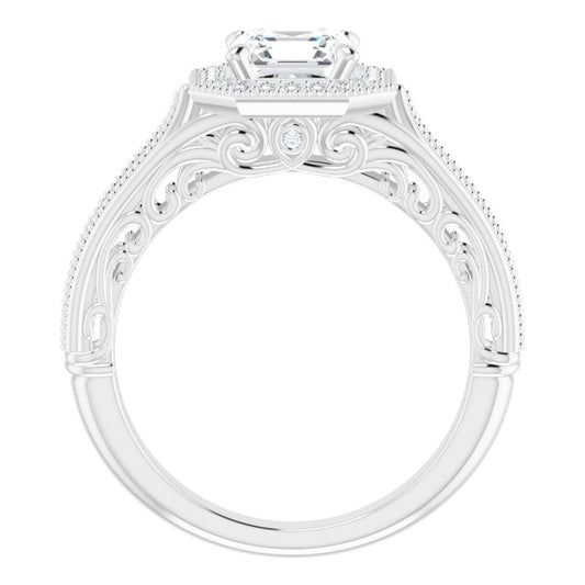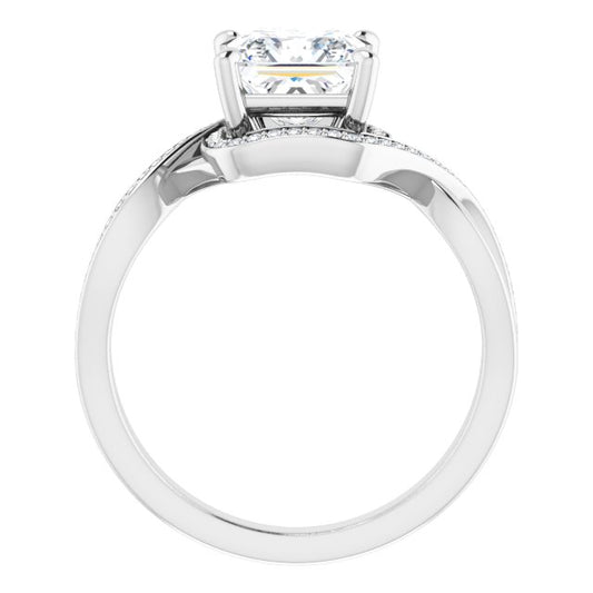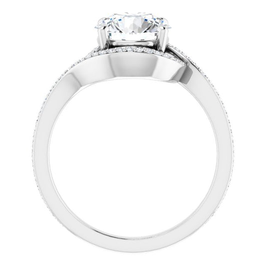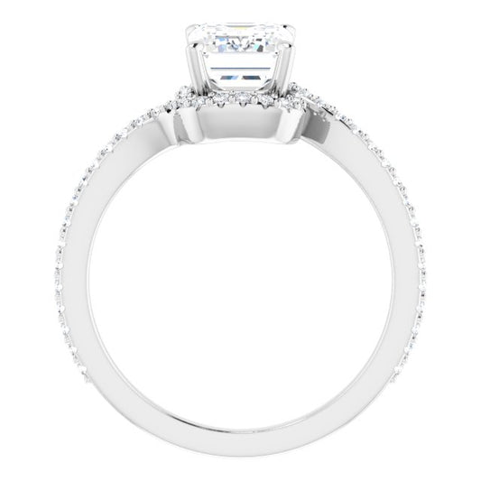 18K White Bypass Halo-Style Engagement Ring Mounting