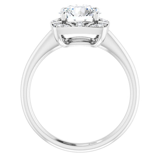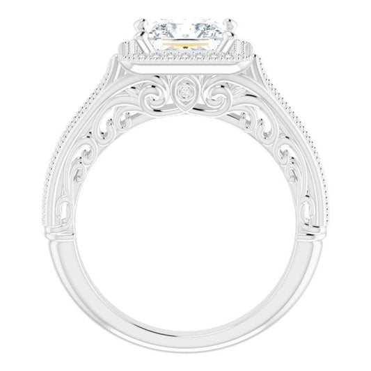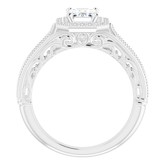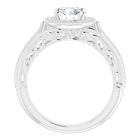 18K White Vintage-Inspired Halo-Style Engagement Ring Mounting