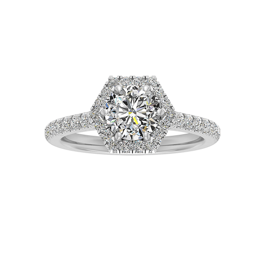 Lily Hexagon Frame Halo Engagement Ring
