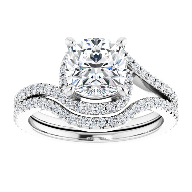 18K White Bypass Halo-Style Engagement Ring Mounting