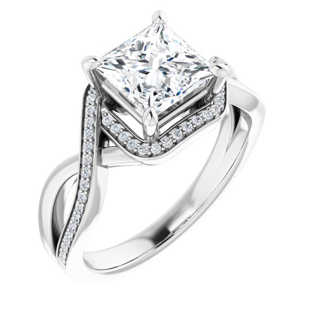 18K White Bypass Halo-Style Engagement Ring Mounting